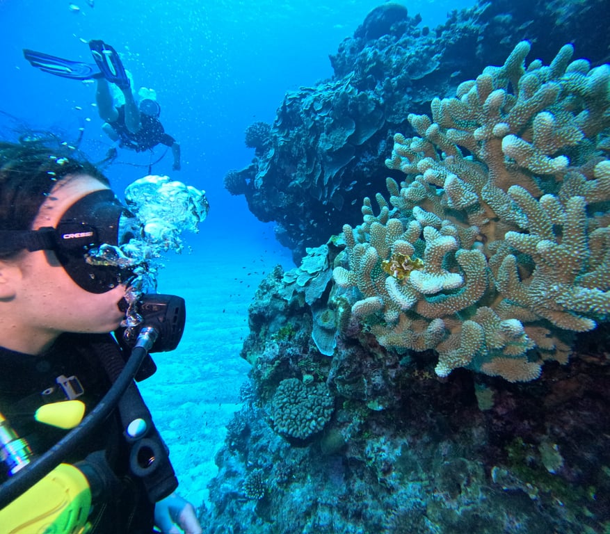 Once our family had done a couple of dives in Niue, the soon-to-be favourite dive site was experienced. Diving through the reef deep into the island you surface in ‘Bubble Cave’ – a cavern with an air pocket that is often filled with sea snakes and copper sweepers, and incredible stalactites encroaching from above. Swimming back out from the cave, the striking bright blue ocean is only topped by the light fractions that dance from above. Magical is an understatement when diving in Niue.