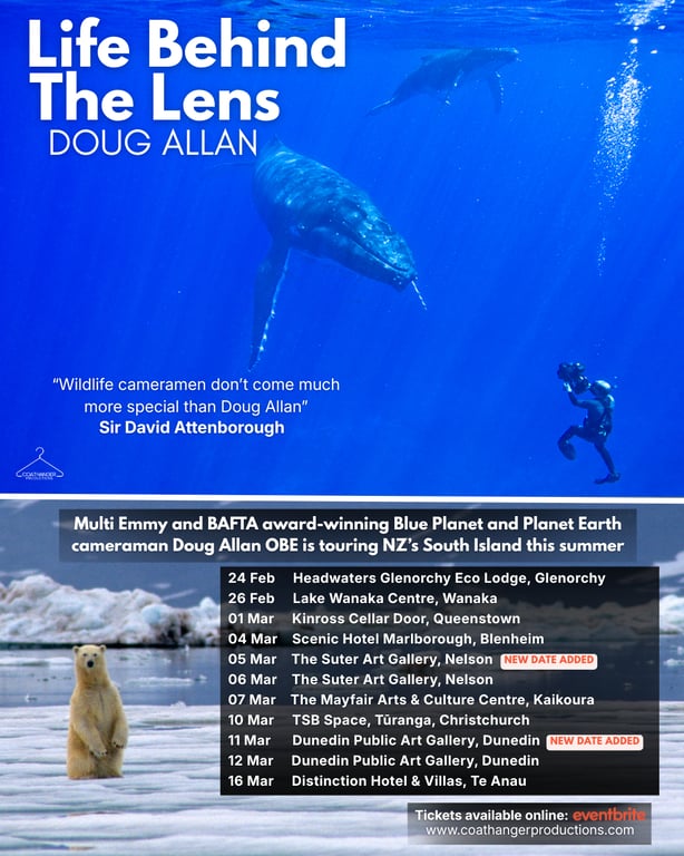 Click here for tickets to Doug's shows in Glenorchy, Wanaka, Queenstown, Blenheim, Nelson, Kaikoura, Christchurch, Dunedin and Te Anau. Be quick - tickets are selling fast!